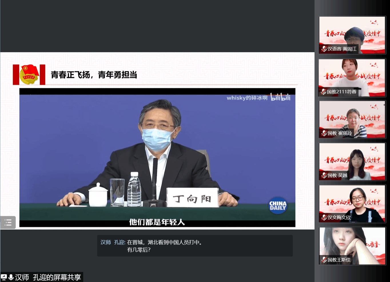 活动的最后,主持人孔迎对本次学习会做出了总结,号召同学们积极行动起来,以实际行动配合抗疫,为社会主义现代化建设贡献青年力量。