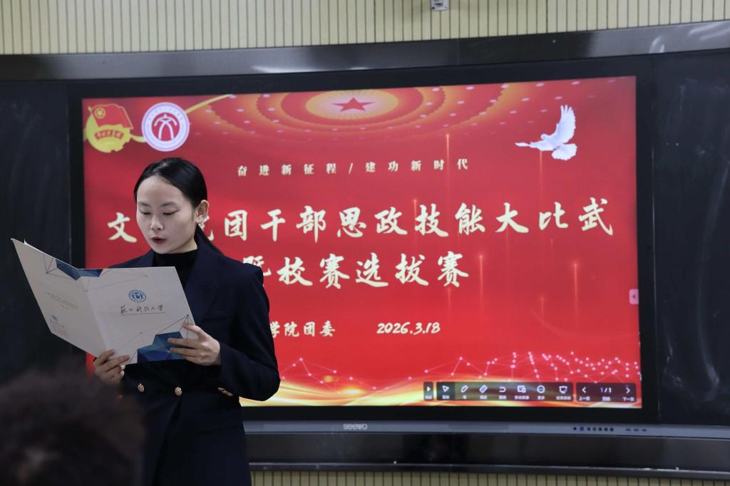 团委成功举办团干部思政技能大比武暨校赛选拔赛。本次活动由汉语2412班许佳乐同学主持,特邀省赛获奖选手徐张扬、王浩天,以及苏州科技大学青年讲师团成员王曦唱、丁美德、夏诗涵担任评委。