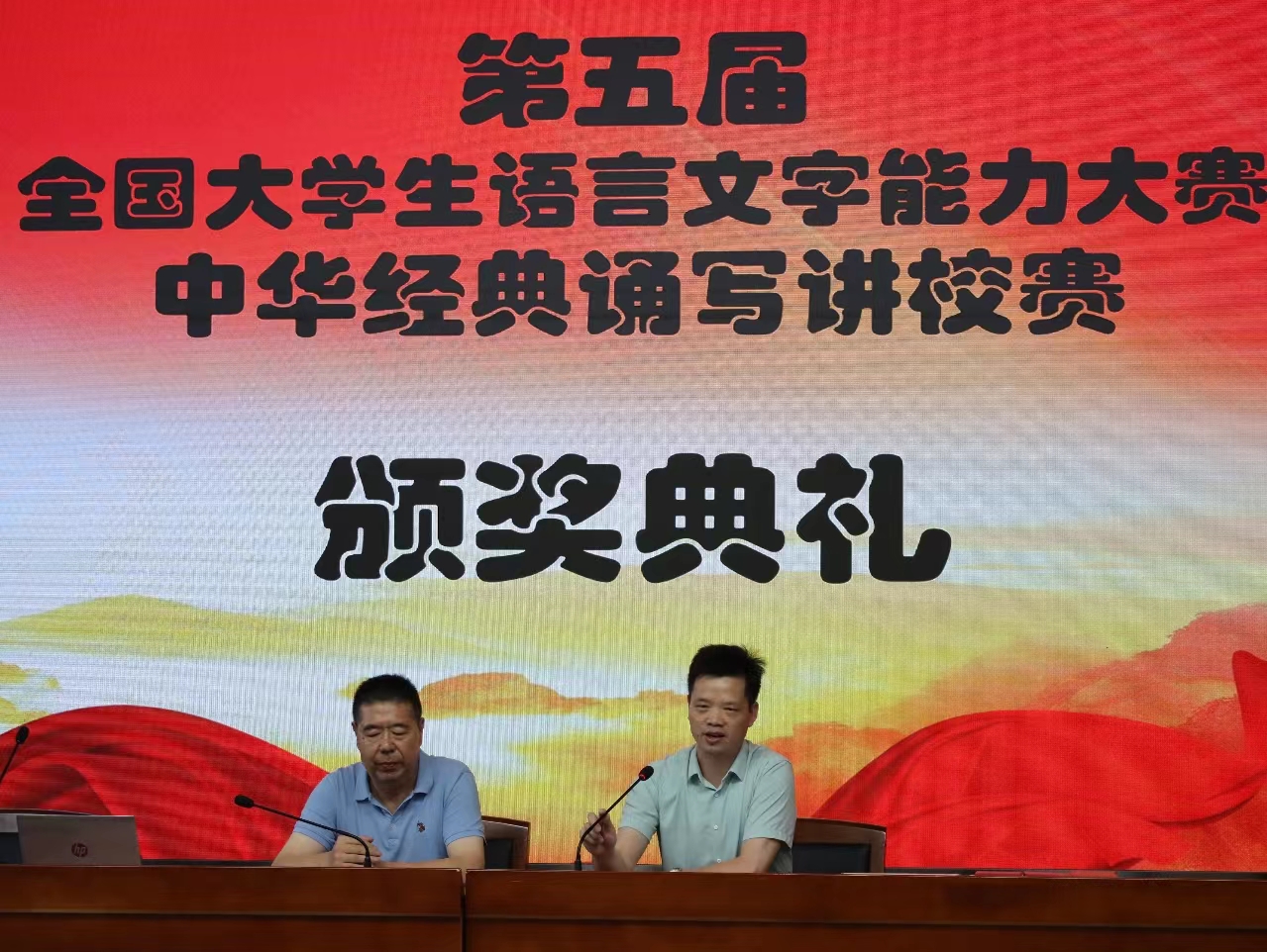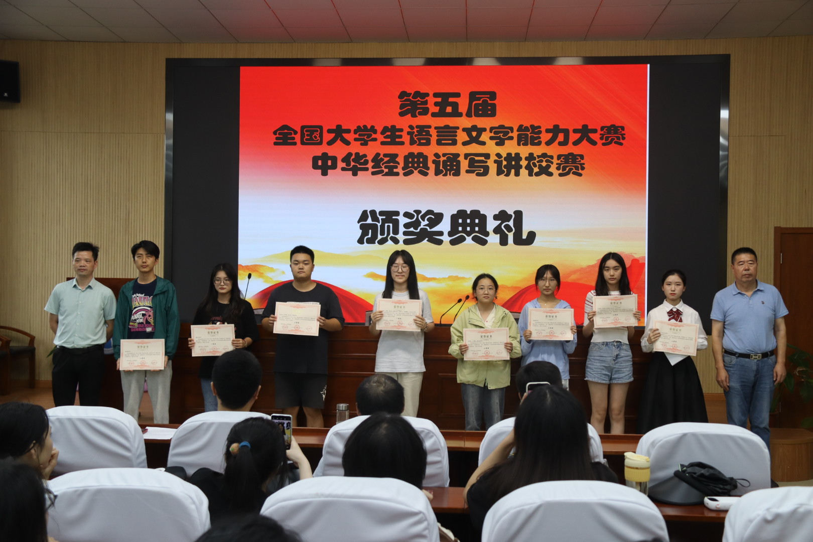 联合校语委在教五楼三楼报告厅为第五届全国大学生语言文字能力大赛、第五届中华经典诵写讲大赛赛事举办颁奖典礼,九游娱乐