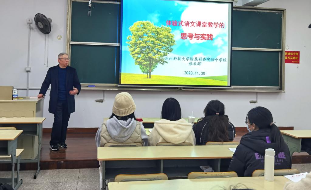 11月30日下午,是行知讲堂第十一讲,江苏省初中语文特级教师、正高级教师张来群在教7楼210做了题为“体验式语文课堂教学的思考与实践”的讲座。他从概念厘清、学理支撑、实施流程、实施策略、基本类型、基本原则六个方面展开论述,向大家介绍了何为“体验式语文课堂教学”。他强调,体验式语文有其极强的延展性、发展性,它需要与未来教育不断涌现的教学方式、方法相拥抱,共同迎接更加灿烂的语文教育的春天。