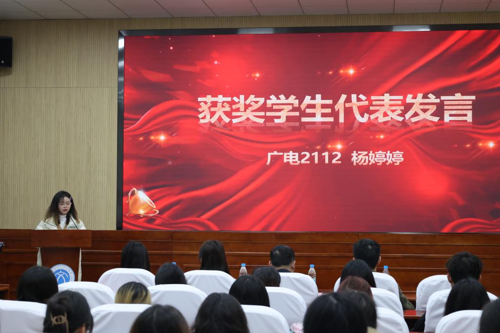 随着颁奖典礼的推进,张洁女士亲自为我院15位杰出学生颁发了荣誉证书。获奖学生代表杨婷婷同学上台发表感言,她代表全体获奖学生向睿朦教育科技有限公司和九游娱乐
