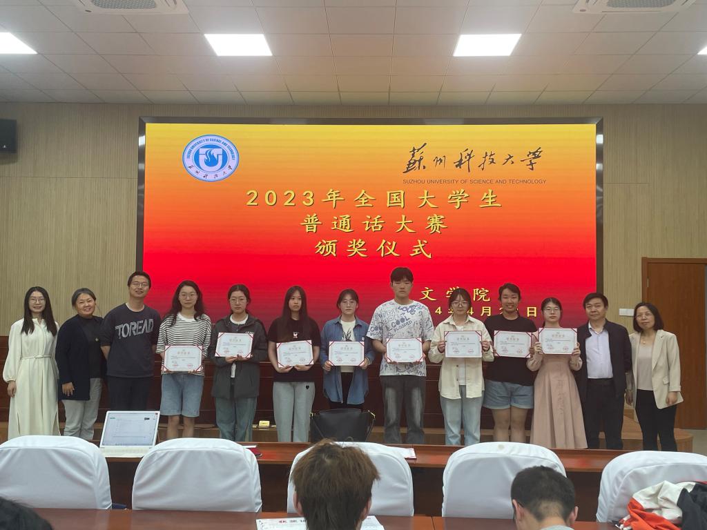 在教五楼三楼报告厅举办了第十九届全国大学生文学作品大赛、2023年全国大学生普通话大赛两项赛事的颁奖会。