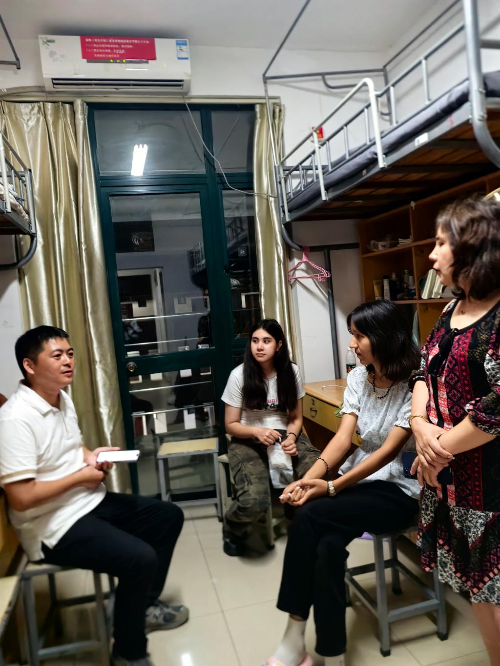 走访过程中,瞿晓庆与新生进行亲切交谈,倾听学生心声,详细了解学生们的生活环境和适应状况,耐心细致解答学生们的各种疑惑,并嘱咐大家要注意宿舍安全问题,共同维护干净整洁的宿舍环境,营造良好的学习、生活氛围。同时鼓励同学们要规律作息、加强锻炼、遵守校规,珍惜大学时光,勇于探索新的知识领域,不断追求卓越。