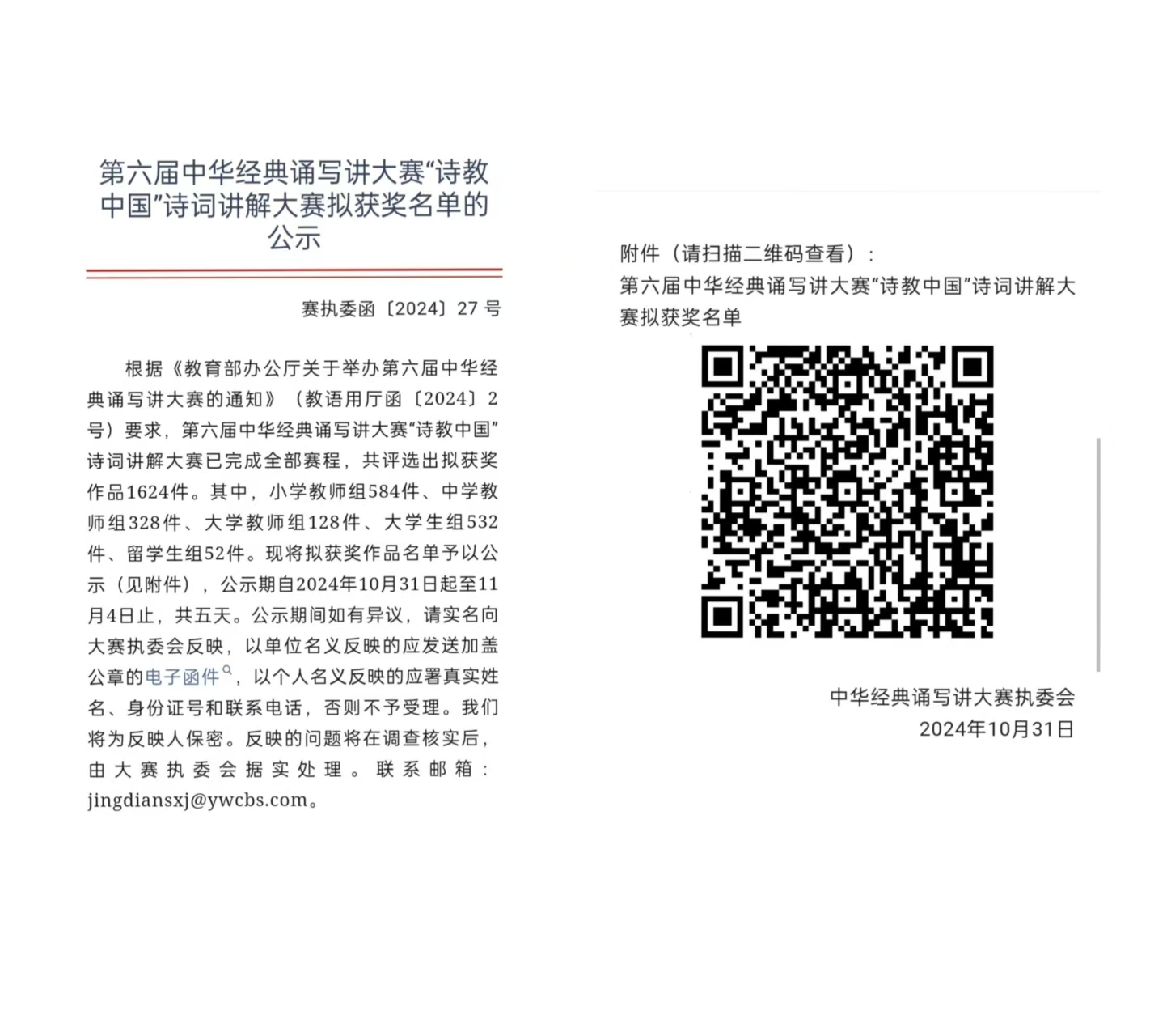 中华经典诵写讲大赛是中国高等教育学会发布的《全国普通高校大学生竞赛分析报告》竞赛目录中的品牌赛事。本届大赛以“典耀中华,赓续文脉”为主题,旨在通过诵读、讲解、书写、篆刻等语言文化活动,加大国家通用语言文字推广力度,体悟中华优秀文化内涵,丰富文化思想实践,激发文化自信自强。教务处、九游娱乐