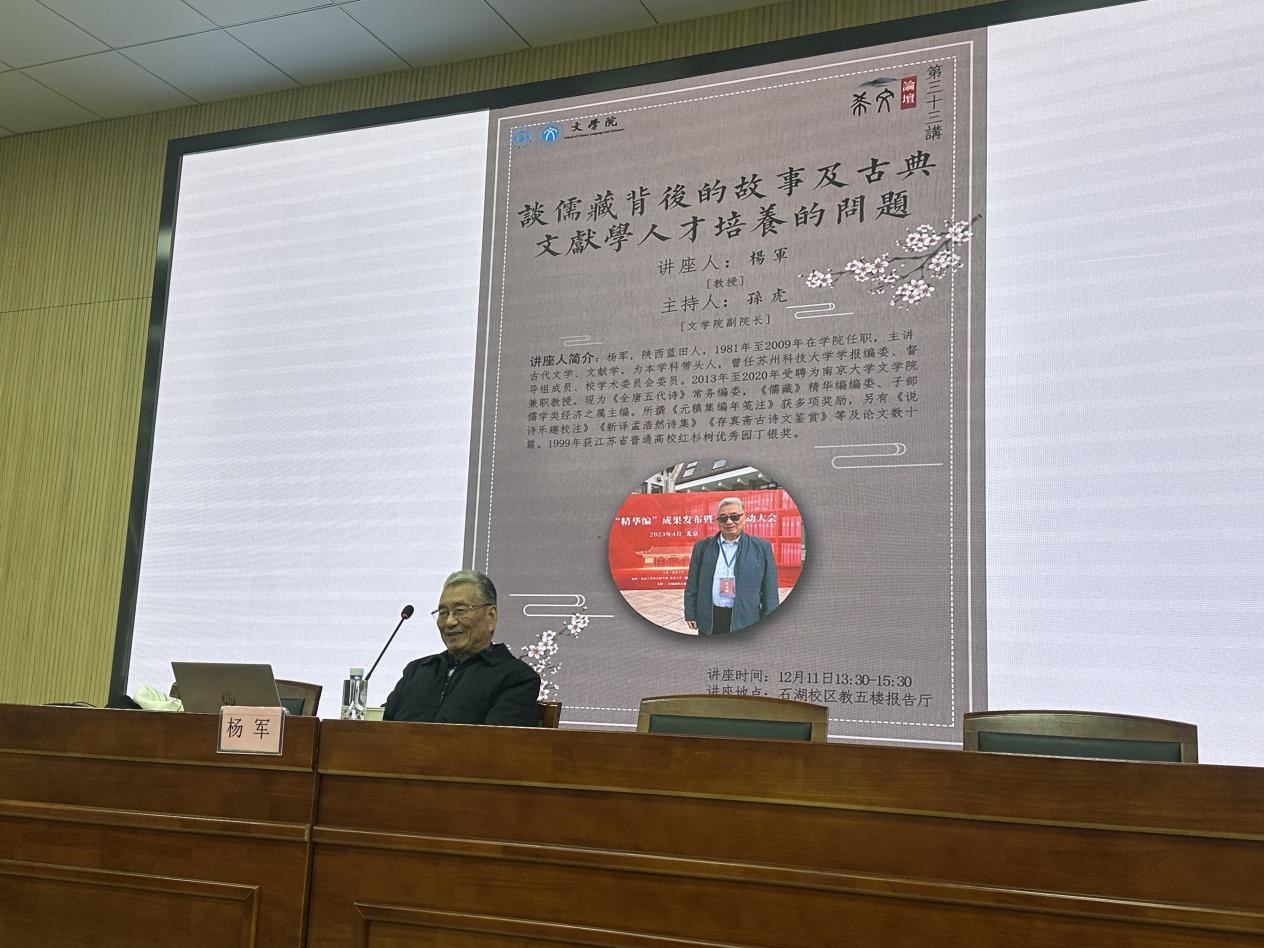 12月11日下午,《儒藏》“精华编”编委、《全唐五代诗》常务编委杨军教授在九游娱乐