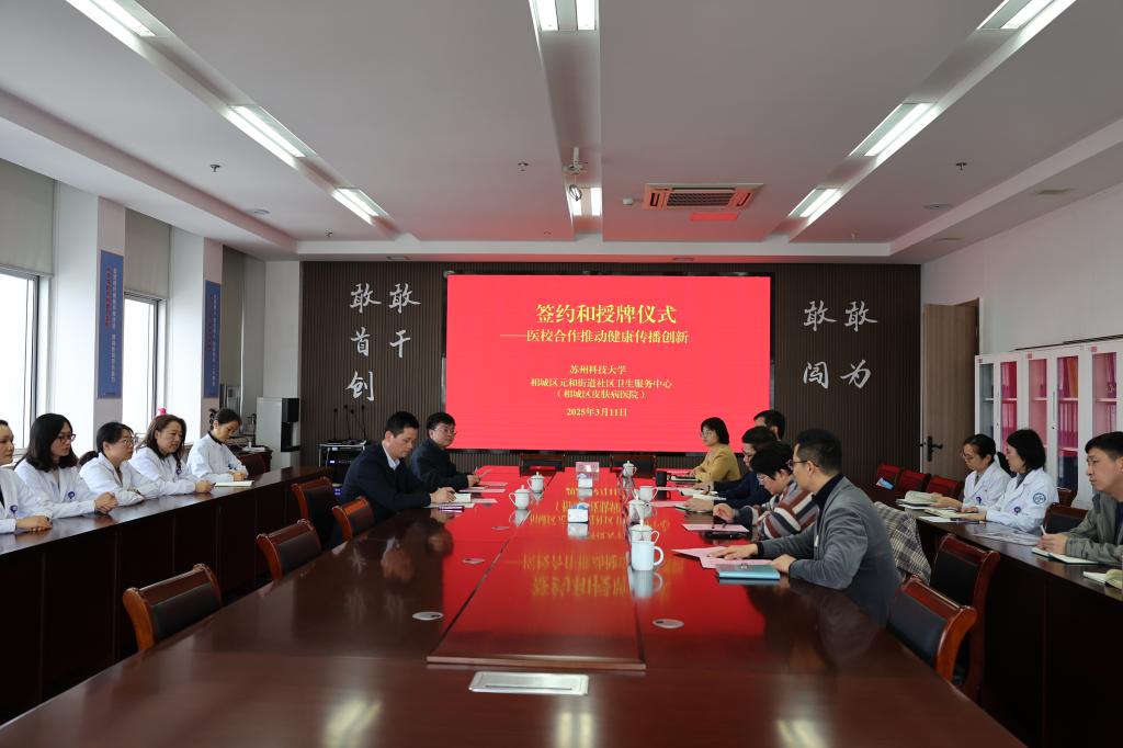 与元和街道社区卫生服务中心(相城区皮肤病医院)、相城高新区社会事业局、相城区卫健委正式达成合作,共建医校健康传播中心。