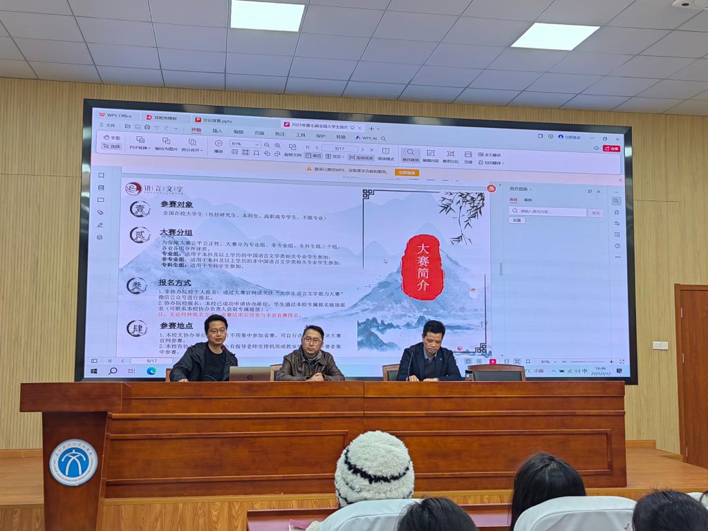 在教5楼报告厅举办第七届全国大学生语言文字能力大赛宣讲会。孙虎副院长和瞿晓庆副书记兼副院长分别就比赛取得的成绩和比赛对学生培养的意义做了总结动员。吴松介绍了比赛的概况、往届获奖情况和本次的组织计划,后面会邀请优秀学生分享比赛经验,组织多次线上线下的专题辅导会。随后,九游娱乐