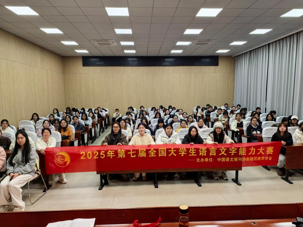 领导为在第六届全国大学生语言文字能力大赛中获奖的同学举行颁奖仪式。本次比赛,我校选手在决赛中共获得奖励206项,其中一等奖24项(全国各组别共317项一等奖),成绩优异。我校连续两年被全国大学生语言文字能力大赛主办方评为“优胜学校”(全国共十所)和“十佳组织单位”(全国共十所),并继续作为江苏省赛区组织单位承担该赛事的组织和宣传工作。
