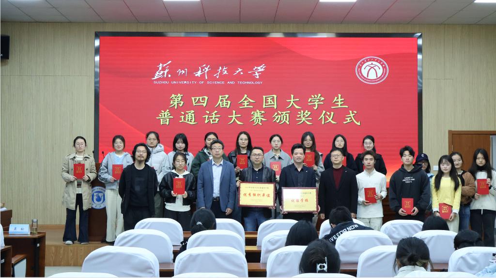第四届全国大学生普通话大赛于年初结束,4月1日下午,九游娱乐 举行了颁奖仪式。江苏省语言学会王健教授、蔡华祥教授为获奖单位及个人颁奖。