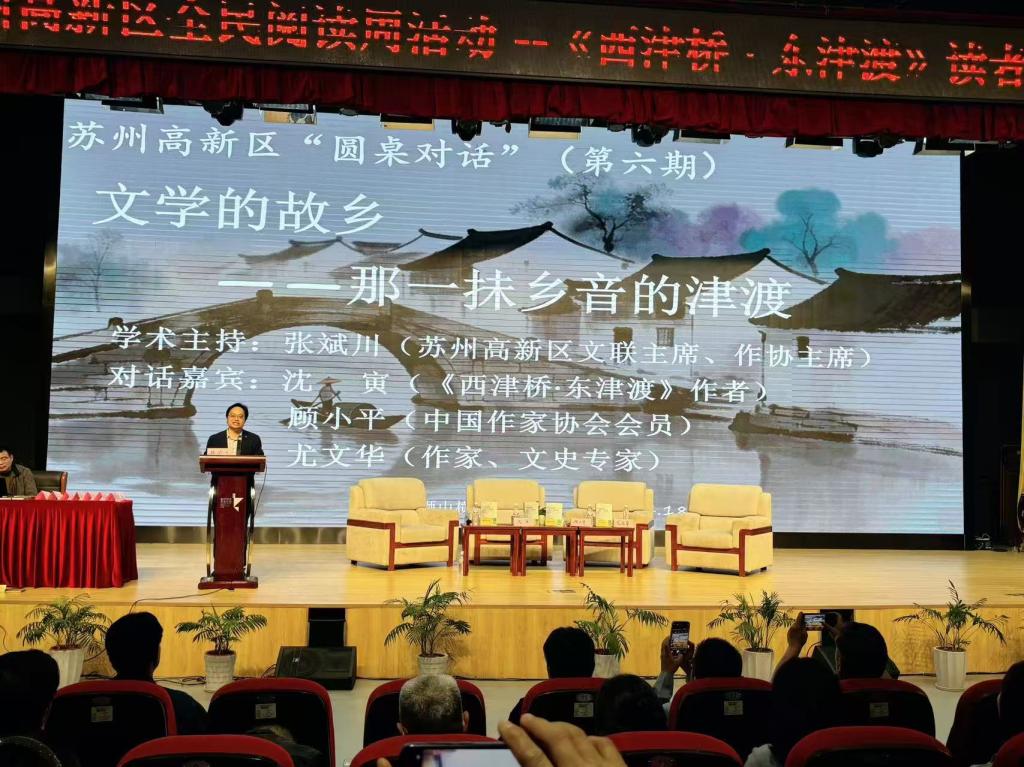 4月18日,“那一抺乡音的津渡——沈寅《西津桥·东津渡》读者分享会”在狮山横塘文体中心举办。活动由苏州高新区文联、苏州高新区作协、苏州高新区枫桥文联、江南文学网络基地联合主办,苏州绛书房、苏州简素书房等单位协办。我院沈伟、刘翔两位老师带领部分学生受邀参会,与现场文学爱好者共赏文学佳作,共话苏州乡土文化。