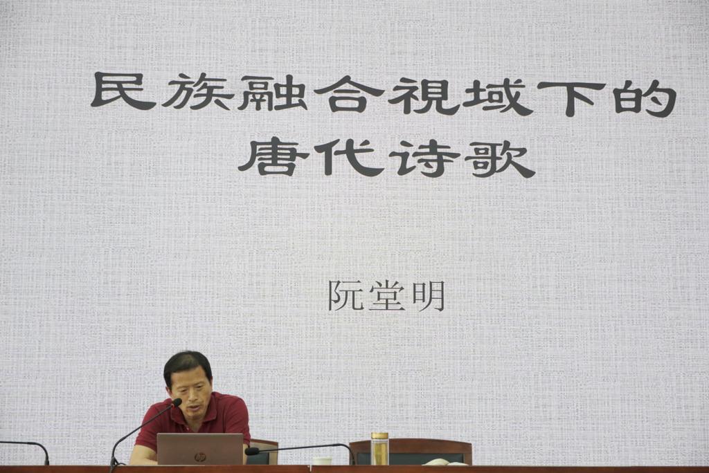 梦回诗唐,以诗鉴史。阮堂明教授从诗词切入,结合唐代疆域与民族分布、古今中外的诗画、文献,向同学们介绍了唐代“华夷一家”的民族政策以及唐代民族交融的积极成果,并呼吁青年学生做中华民族伟大复兴的参与者,民族融合的践行者。