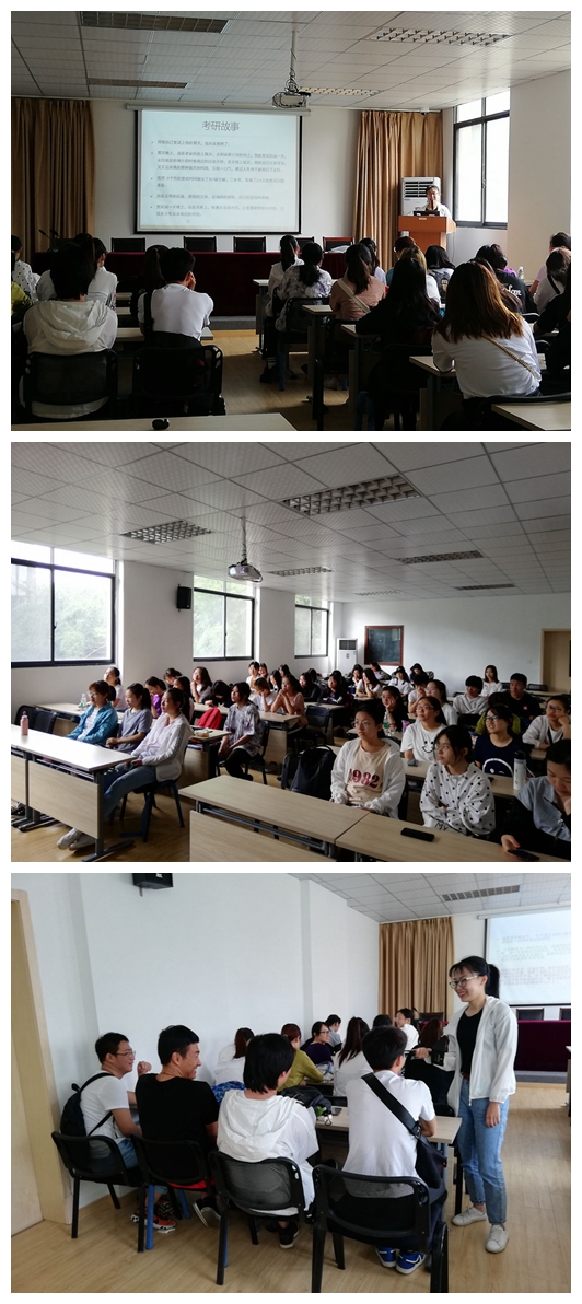 唐新雨同学是这次班会的主持人,她幽默风趣,班会在轻松的氛围中展开。首先,主持人给同学们讲述了学长学姐们的考研故事,结合考研自习室里学长学姐们奋笔疾书的照片,让同学们感受到了校园里学长学姐准备考研的紧张气氛。随后,主持人为大家讲解了什么是考研、报考信息、考研分类及录取情况等,鼓励大家积极参与,强调要把注意力转移到学习上来,端正学习态度,培养独立思考钻研的能力,拓宽知识面,提高综合素质。最后,主持人对大家进行了采访,部分同学简单发表了自己对考研的看法、回答了如何准备考研以及对未来如何规划的问题。从结果上来看,班上女生考研的意愿明显高于男生,但是大家对自己未来的规划都是积极且较为明确的。