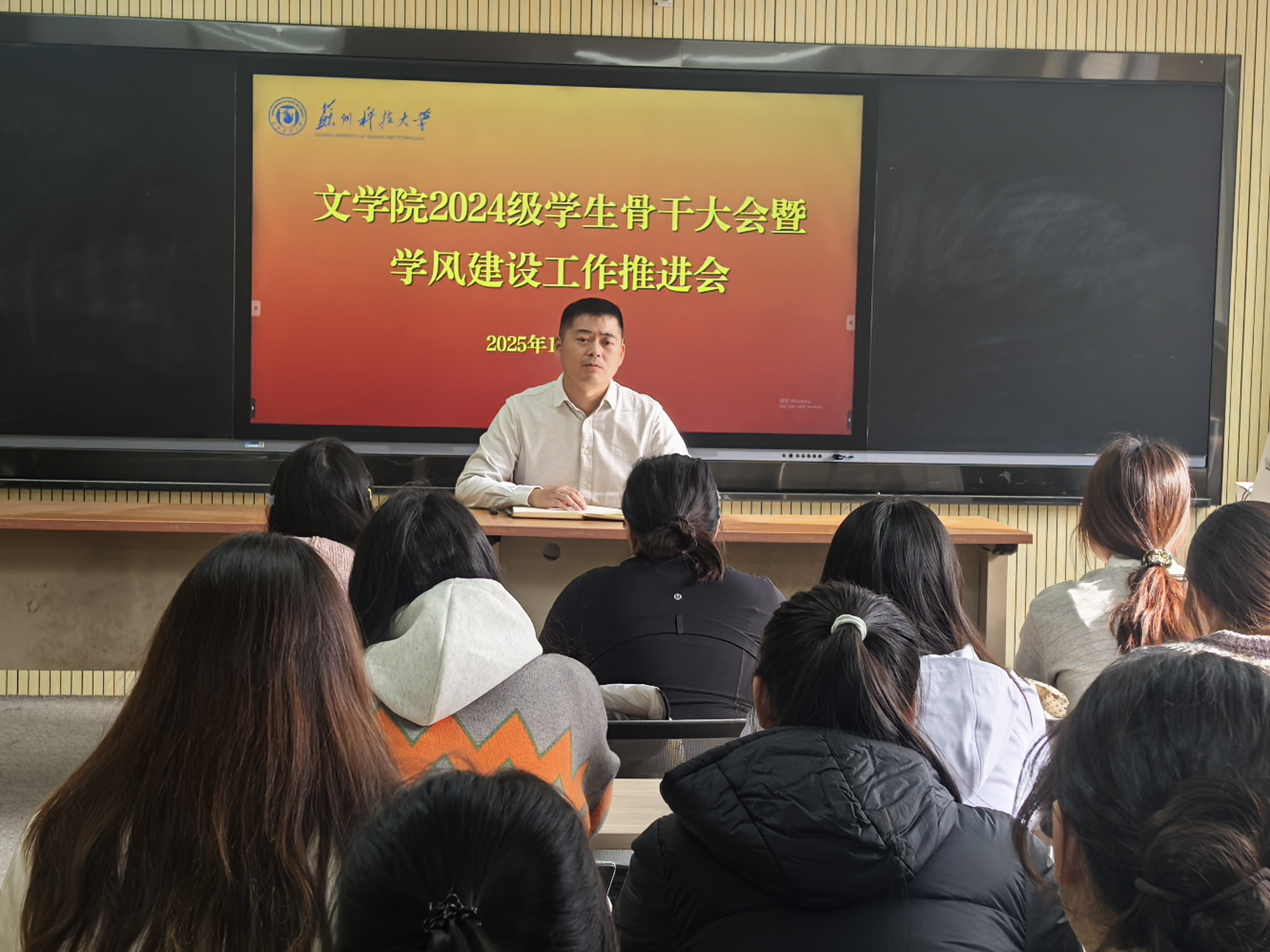 于12月12日召开2024级学生骨干大会暨学风建设工作推进会。会议由24级辅导员孙佳明主持,24级全体班长、团支书及学委参加会议。