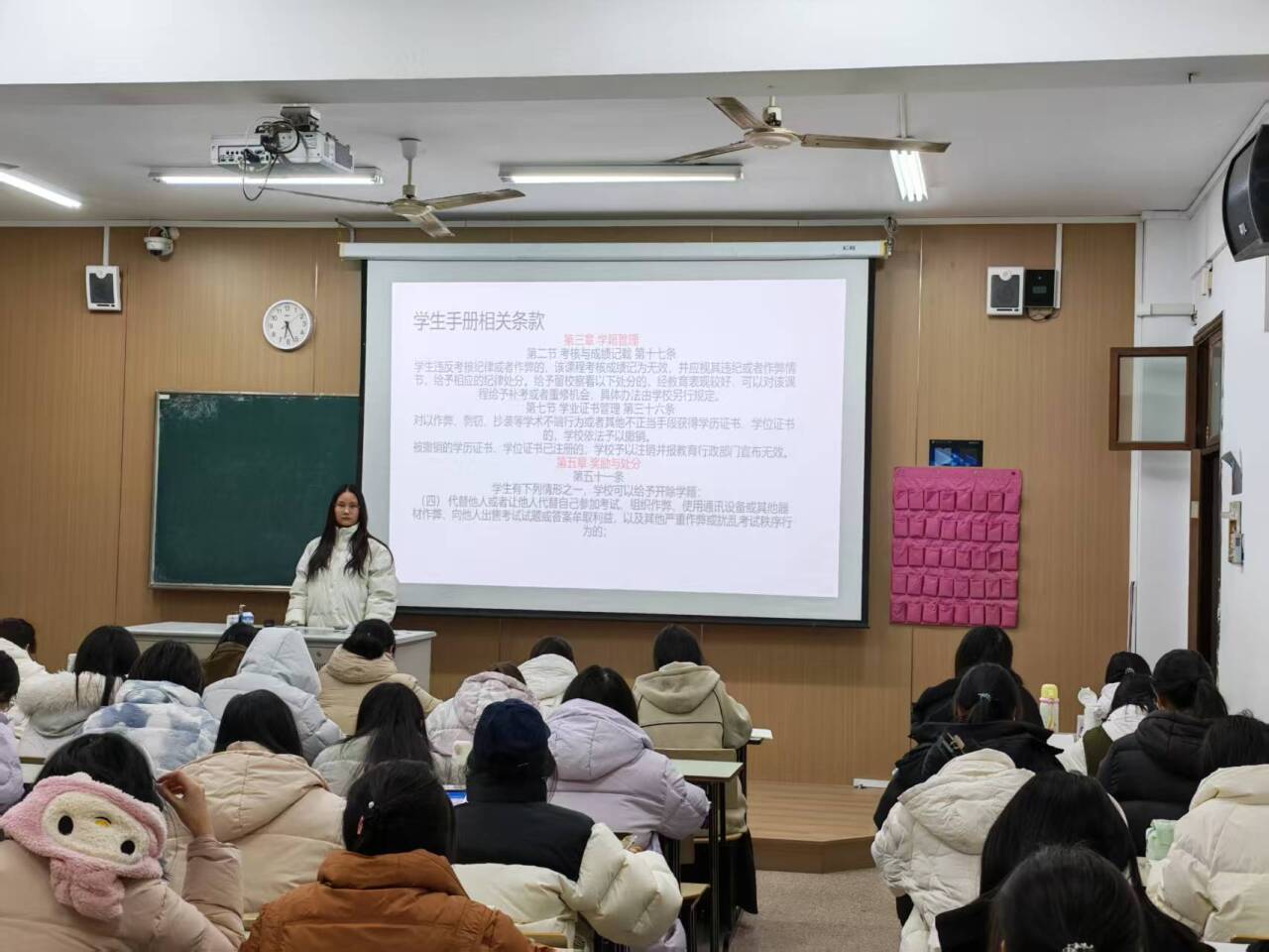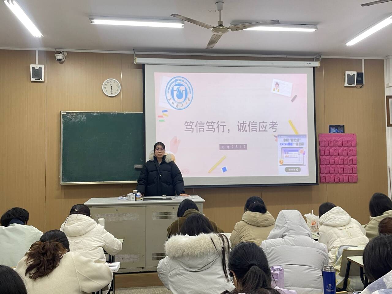 汉师2511的班长带领全班同学重点学习《学生手册》及《苏州科技大学违纪处分规定》相关条款,明确考试作弊将面临成绩无效、纪律处分乃至开除学籍的严重后果,引导同学们树立正确考试观,制定自我监督计划,共同抵制舞弊行为,用诚信铺就前行之路。
