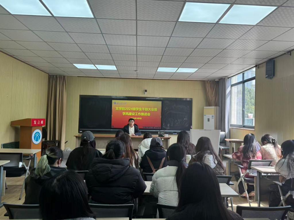 于3月9日召开2024级学生骨干大会暨学风建设工作推进会。会议由24级辅导员孙佳明主持,24级全体学生干部参加会议。