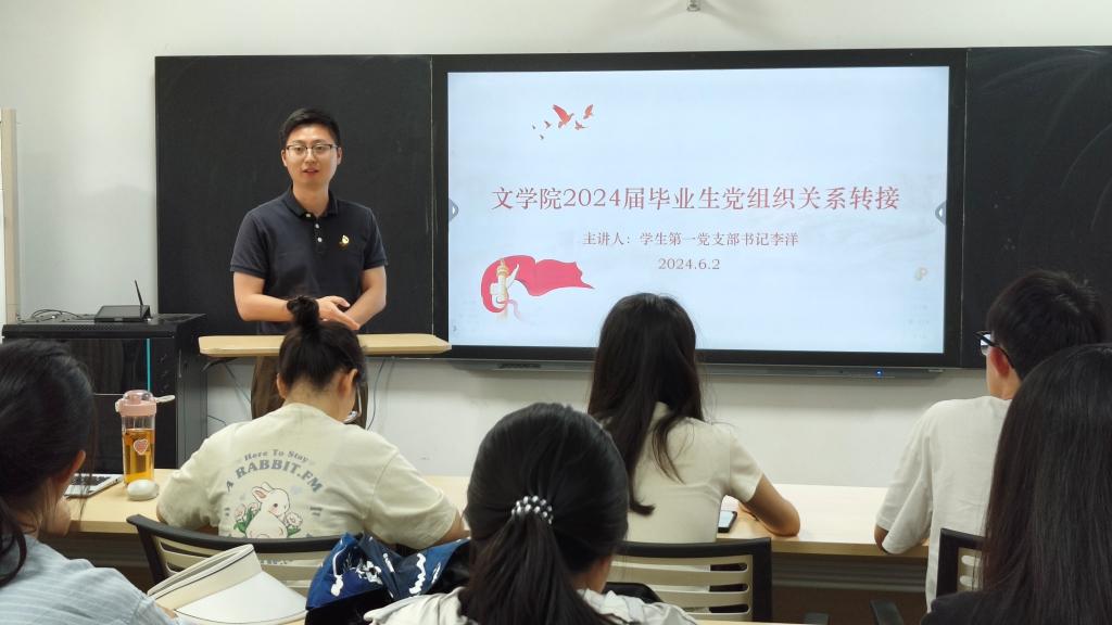 李洋围绕毕业生党员的组织关系情况,从资料审核、材料归档、组织转接等多个方面,介绍毕业生党组织关系转接的各项流程,讲解在转接过程中本科生党员与毕业生党员的工作细节。