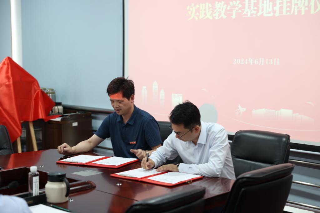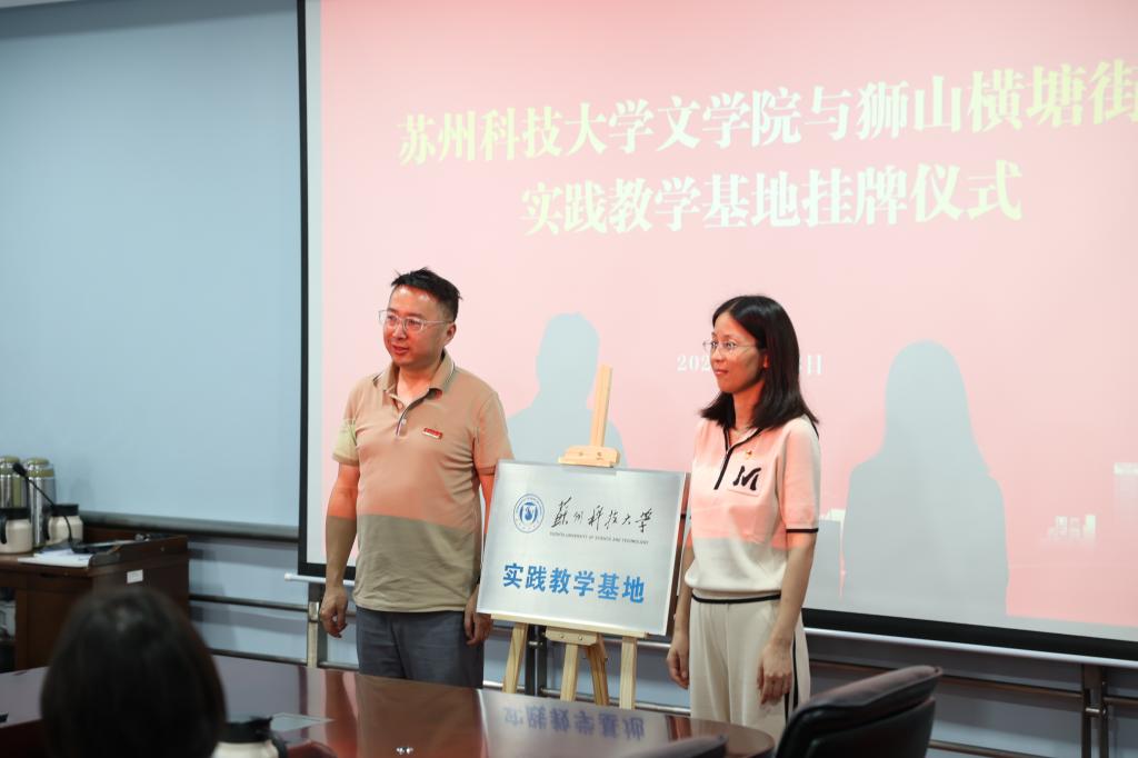 交流会后,孙虎副院长与狮山横塘街道办事处副主任魏春晓签订了实践教学基地协议。瞿晓庆副书记与狮山横塘街道党工委委员赵丽平共同为实践教学基地同揭牌。
