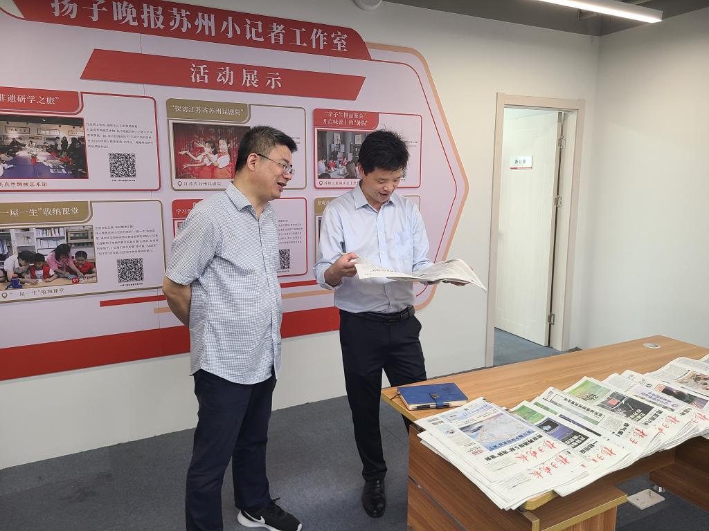 一行参访了扬子晚报苏州事业部的直播间和小记者工作室,了解了扬子晚报在媒体融合发展、开展小记者实践活动等方面的心得和成果,并与从业人员就主流媒体未来发展、媒体项目化运营等话题进行了深入交流。