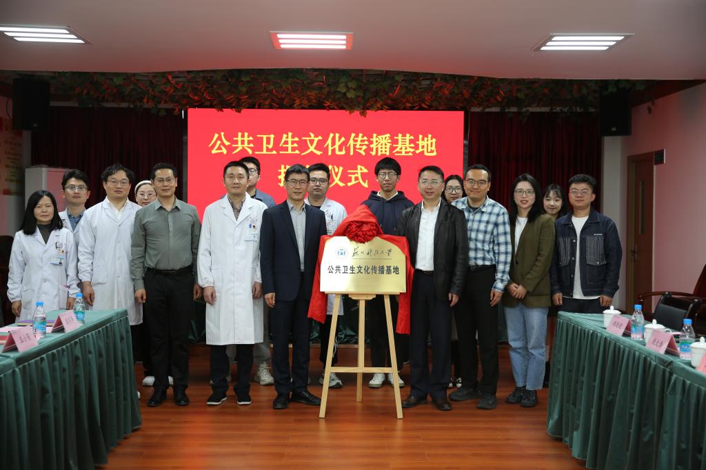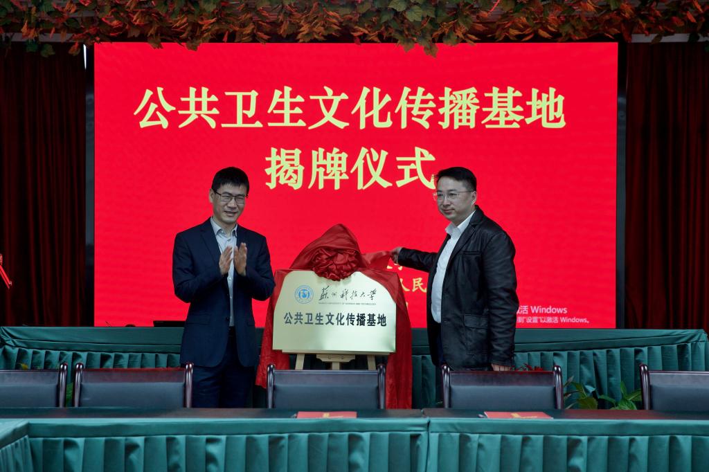 田爱国和瞿晓庆共同为苏州科技大学“公共卫生文化传播基地”揭牌。